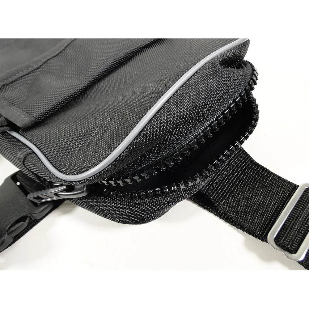 Heavy-duty thigh pocket with zipper and built-in ring system for better support.