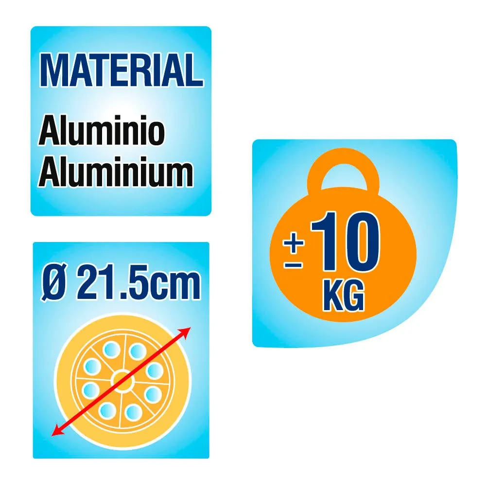 The trolley measures 52x37x105, structure made of 25 mm diameter aluminum tubes, polyester and with 2 plastic wheels.