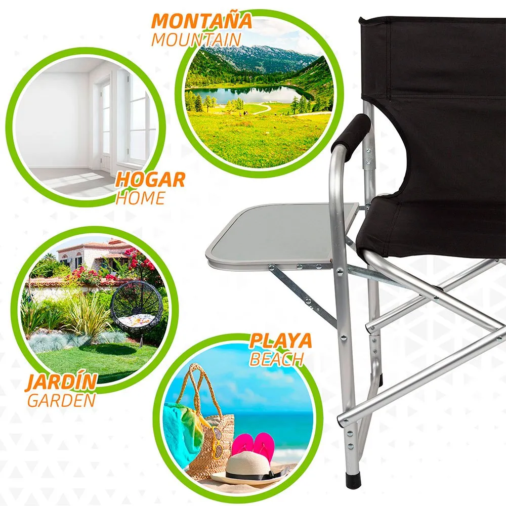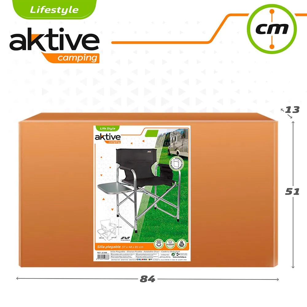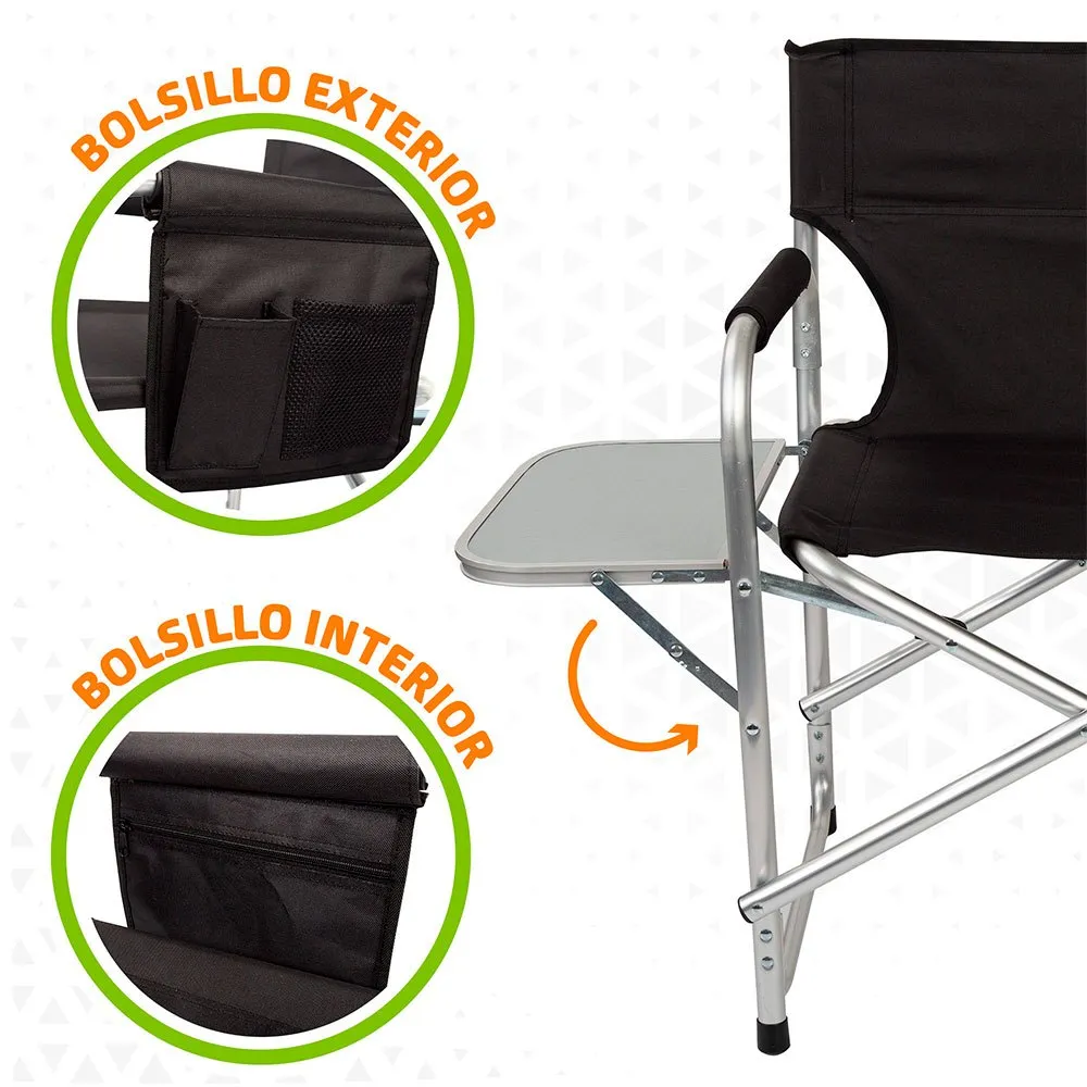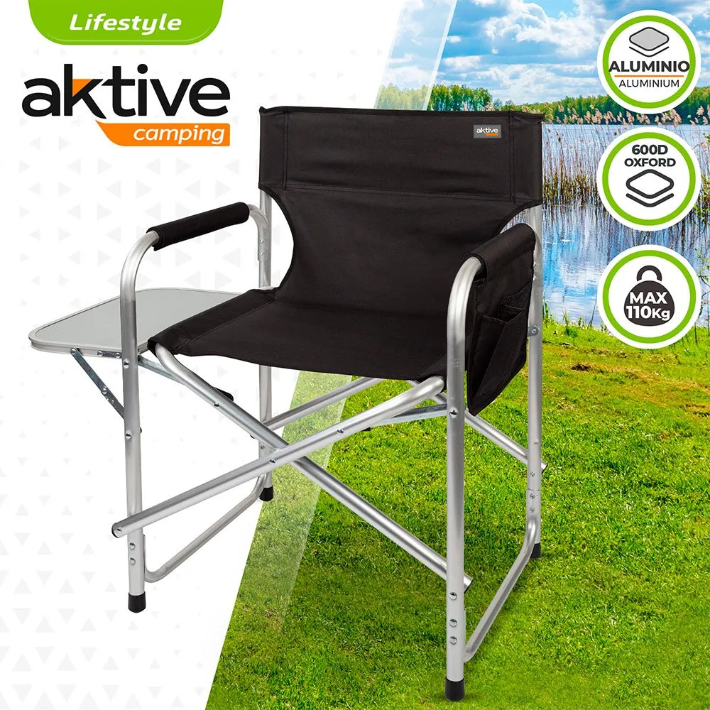 Aktive folding director´s chair designed with 600D Oxford black fabric and resistant aluminum structure with non-slip studs.