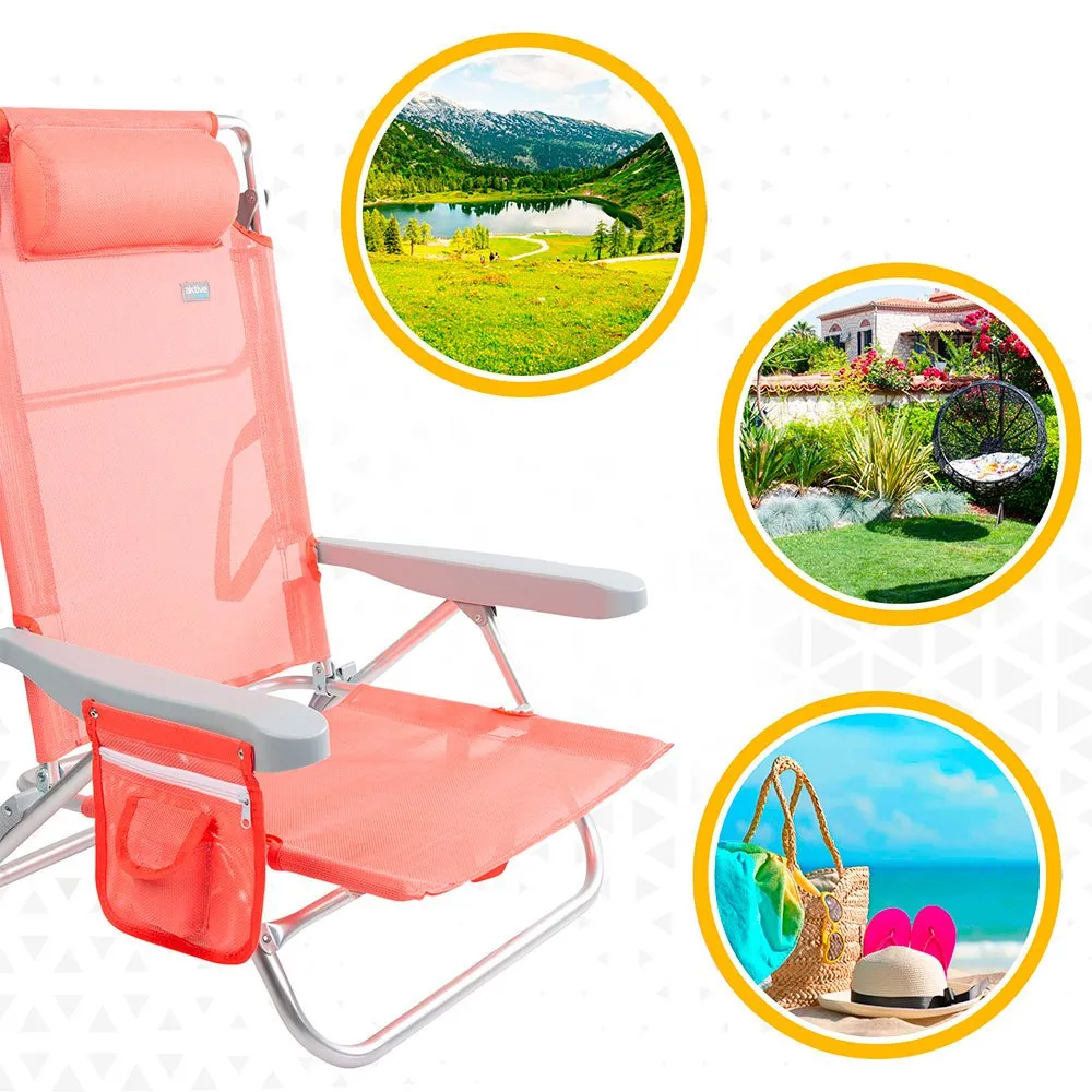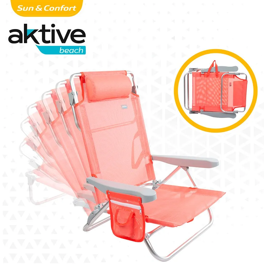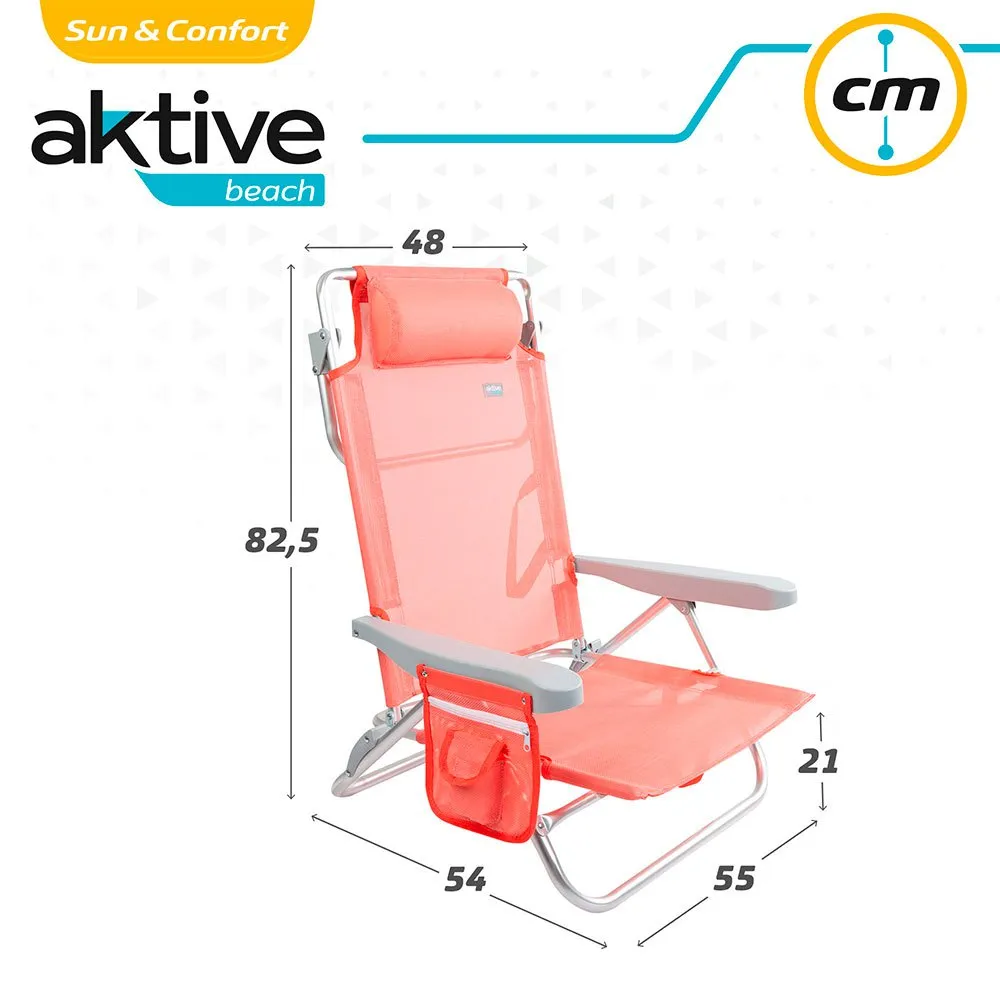 The AKTIVE Low Folding Chair is a versatile and modern seating option that can be used both indoors and outdoors, whether you want to relax by the pool or on your patio. With dimensions of 48 x 54 x 82.5 cm, this chair is designed to offer comfort and convenience, and is made with a lightweight yet sturdy aluminum frame that can support up to 120 kg of weight.This particular model comes in an eye-catching flaming red color that adds a pop of vibrancy to any decor, and it features a multi-position backrest that allows you to adjust the angle to your liking. Whether you want to sit upright or lean back and relax, this chair can accommodate your preferences.In addition, this AKTIVE Low Folding Chair is easy to store and transport, thanks to its compact foldable design that allows it to be stored in small spaces when not in use. This makes it a great choice for camping trips, picnics, or any other outdoor activity that requires comfortable seating.Overall, the AKTIVE Low Folding Chair is a quality piece of furniture that combines style, functionality, and durability, making it a great investment for anyone who values comfort and convenience in their outdoor seating arrangements.