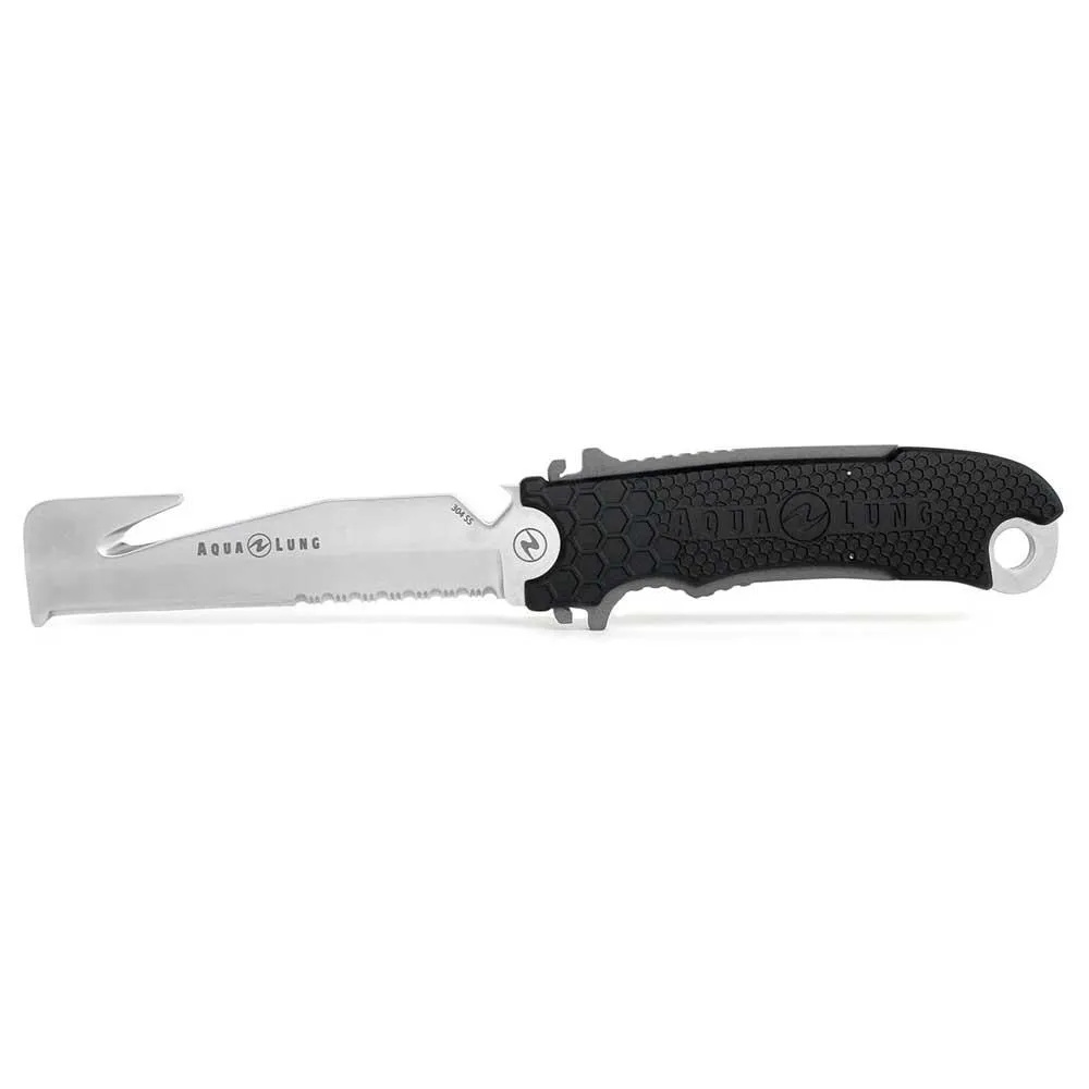 Aqua Lung´s Squeeze Lock dive knives are preferred by divers around the world. The patented Squeeze Lock design allows the diver to securely lock the knife in its sheath, while offering quick and easy release with a simple movement of the handle. It features a 4 ½ (10.8 cm) blade, with an overall length of 9 ½ (24.2 cm) and can be easily mounted to the connection points of most Aqua Lung buoyancy vests.