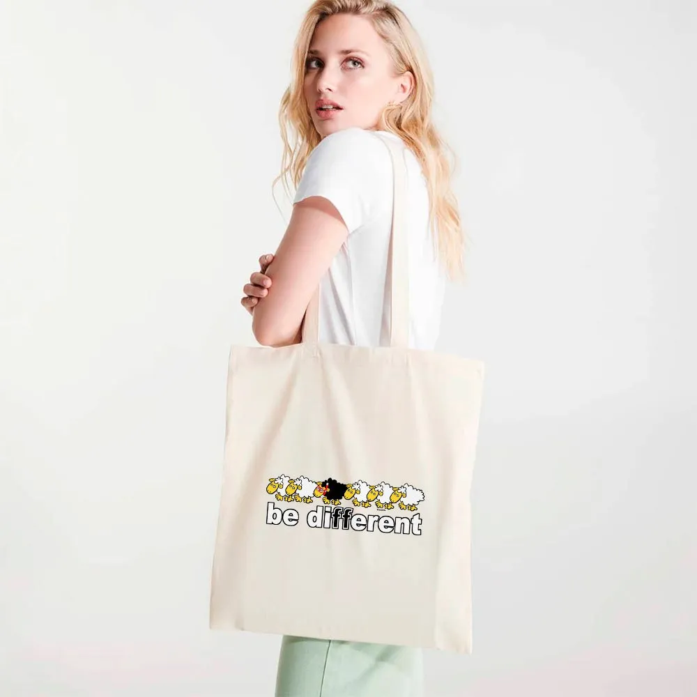 Tote bag made of cotton fabric in natural colour, with long handles in same colour tone.