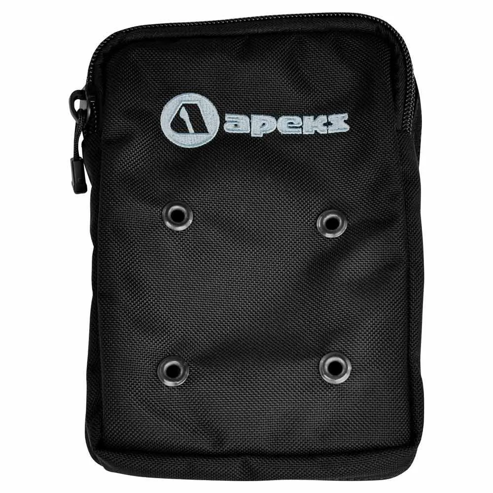 The Large Cargo Pocket has bellow construction, a zipper closure and capability to attach directly to waistband grommets. It can also slide over the harness waistband even after the diver is suited up.