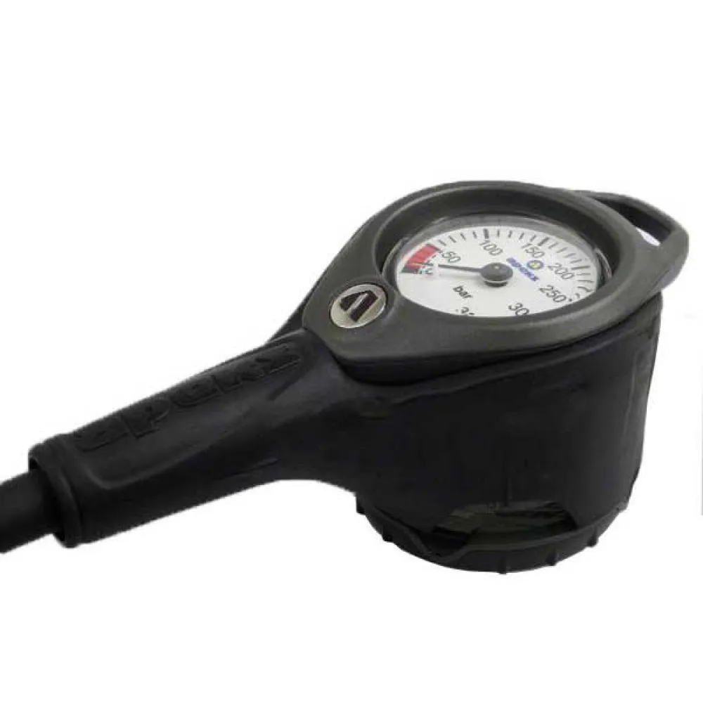 The pressure (contents) gauge offers a range from 0 to 300 bar.