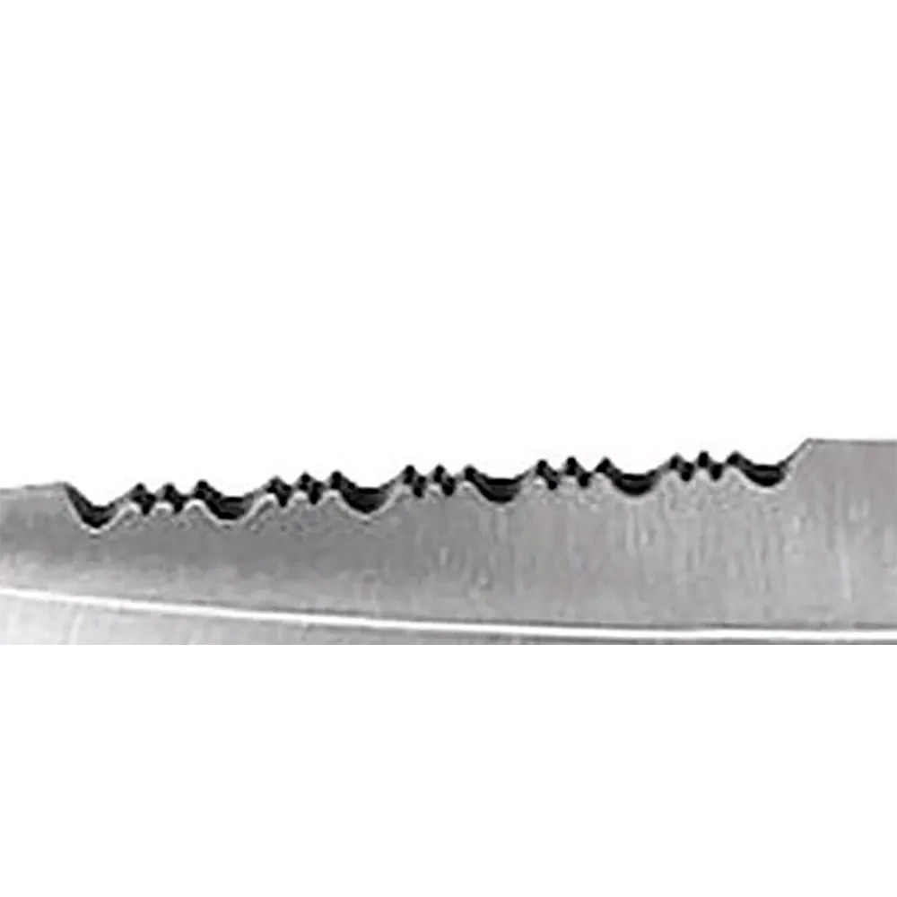 Section of the rhomboid sheet for greater resistance to bending and breaking. One part has a smooth edge and the other has alternating teeth and thread cutters.