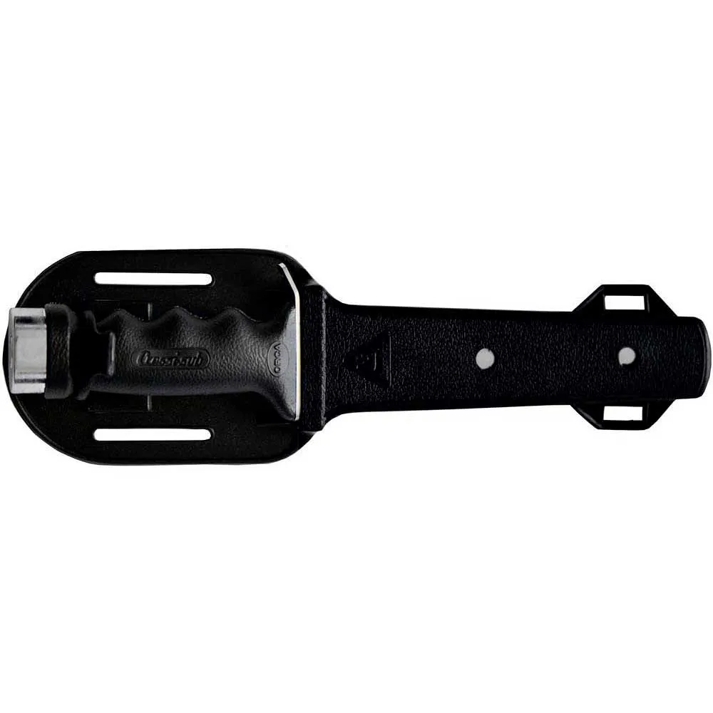 It also has loops to attach the knife to your leg or onto your belt and comes with two leg straps.