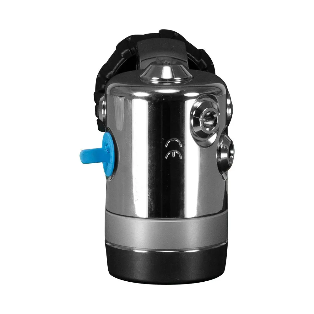As the diver descends the demand for air increases. To maintain the supply, the intermediate pressure increases relative to the water depth. In this dry sealed system hydrostatic pressure, acting on the outer sealing diaphragm, is transmitted to the primary diaphragm via the load transmitter. This first stage utilizes a unique over-tracking (over-balanced) diaphragm design, where the intermediate pressure supplied to the second stage increases more than traditional balanced models, as the diver descends to greater depths. The result is superior breathing performance regardless of depth.