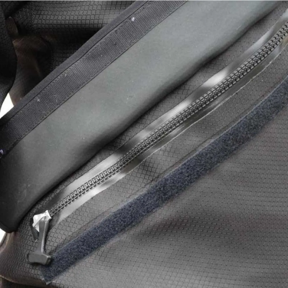 The DX-300X is the benchmark expedition-grade drysuit, with superior strength & comfort. Overall material weight is 700 g/sq. “Outer Layer” is a heavy duty Cordura Ripstop which offers superior puncture and abrasion resistance with incredible tear strength in excess of 300N. The middle “Butyl Mass” is constructed of 12 layers to provide long-term water integrity with superb chemical & ozone resistance. “Inner Liner” is a silk weave polyester offering the optimum in comfort and softness with easy donning and doffing. Freedom of movement is optimized with panels cut on the material bias to provide 25% extra stretch than traditional trilaminate and a low profile and flexible YKK zipper.