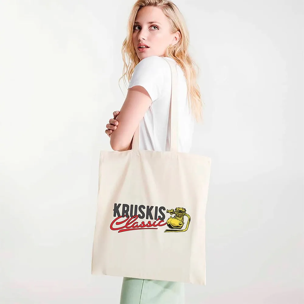Tote bag made of cotton fabric in natural colour, with long handles in same colour tone.