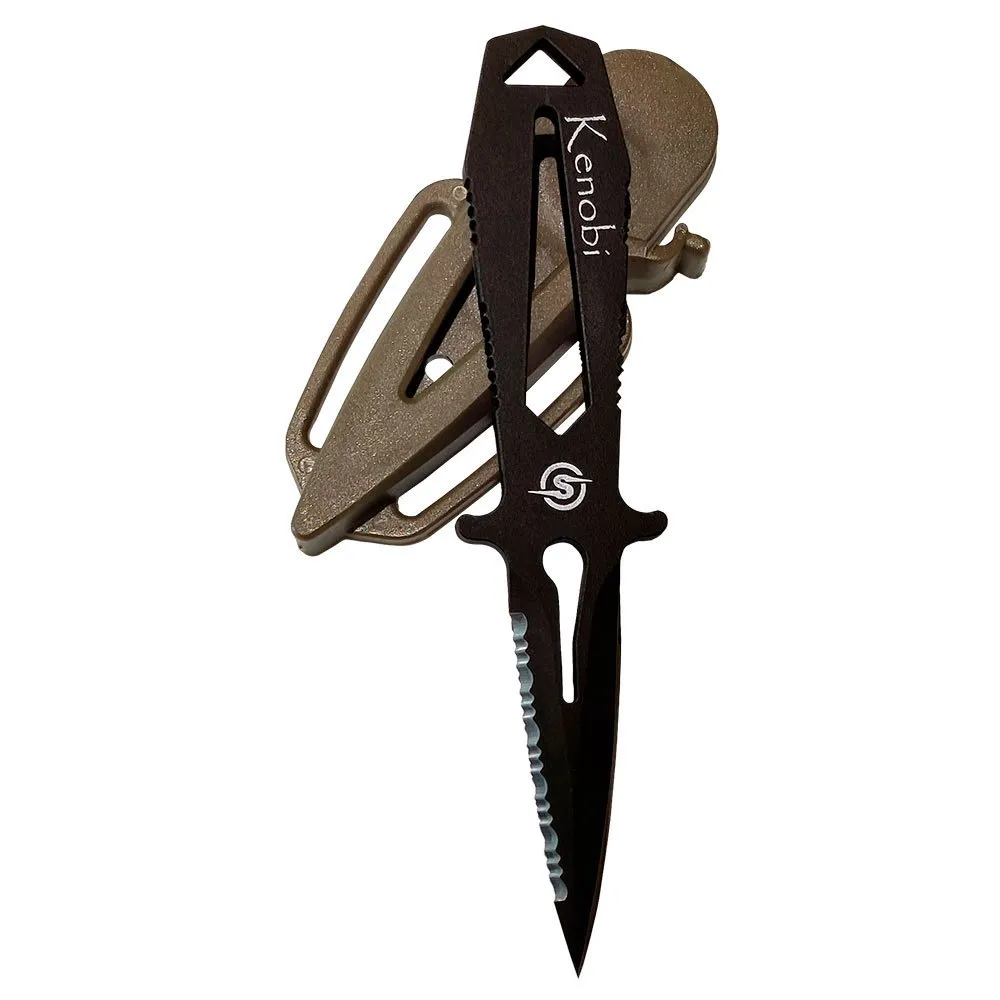 Kenobi Black sub knife (Blade length 7cm / Knife length 17.5cm) with black sheath and military green blade