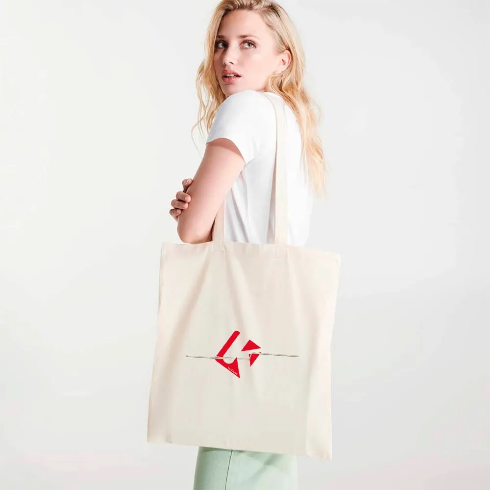 Tote bag made of cotton fabric in natural colour, with long handles in same colour tone.