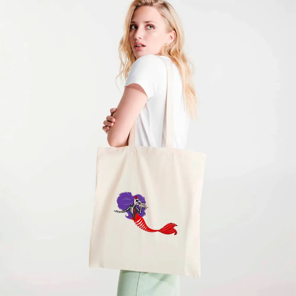 Tote bag made of cotton fabric in natural colour, with long handles in same colour tone.