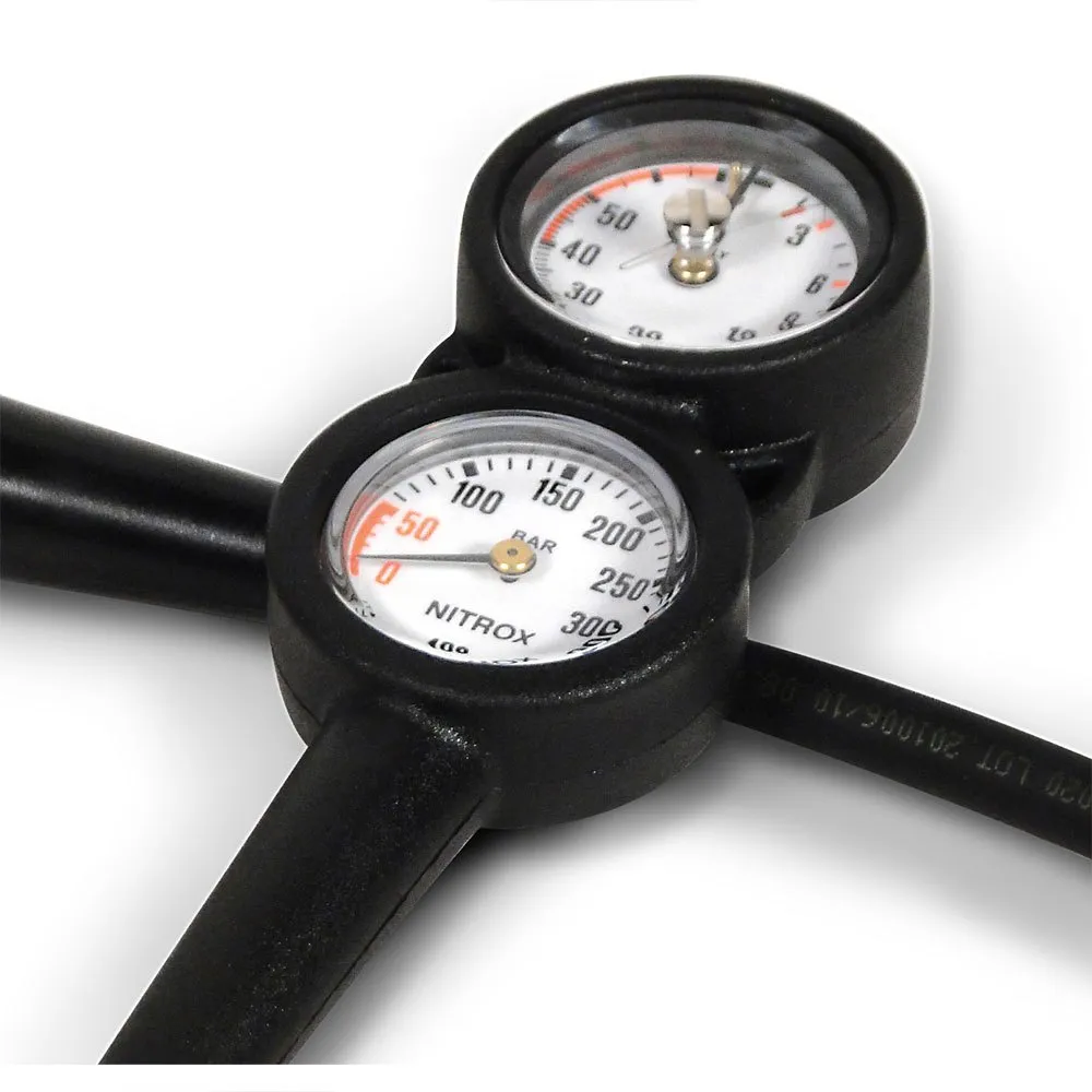 Console with depth gauge and 400 bar nitrox pressure gauge.
