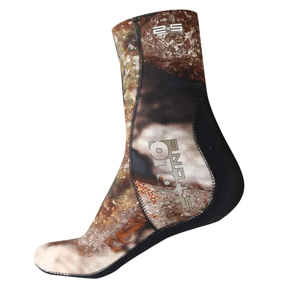 2.5 mm soft and warm double-lined socks. They feature the Holo Stone camo pattern.