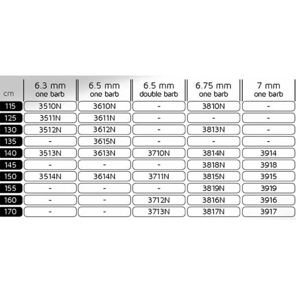 Shafts integrating three shark-fins in place of traditional notches. The profile of the shark fins is thin with the end resulting in better hydrodynamics and penetration through the fish.