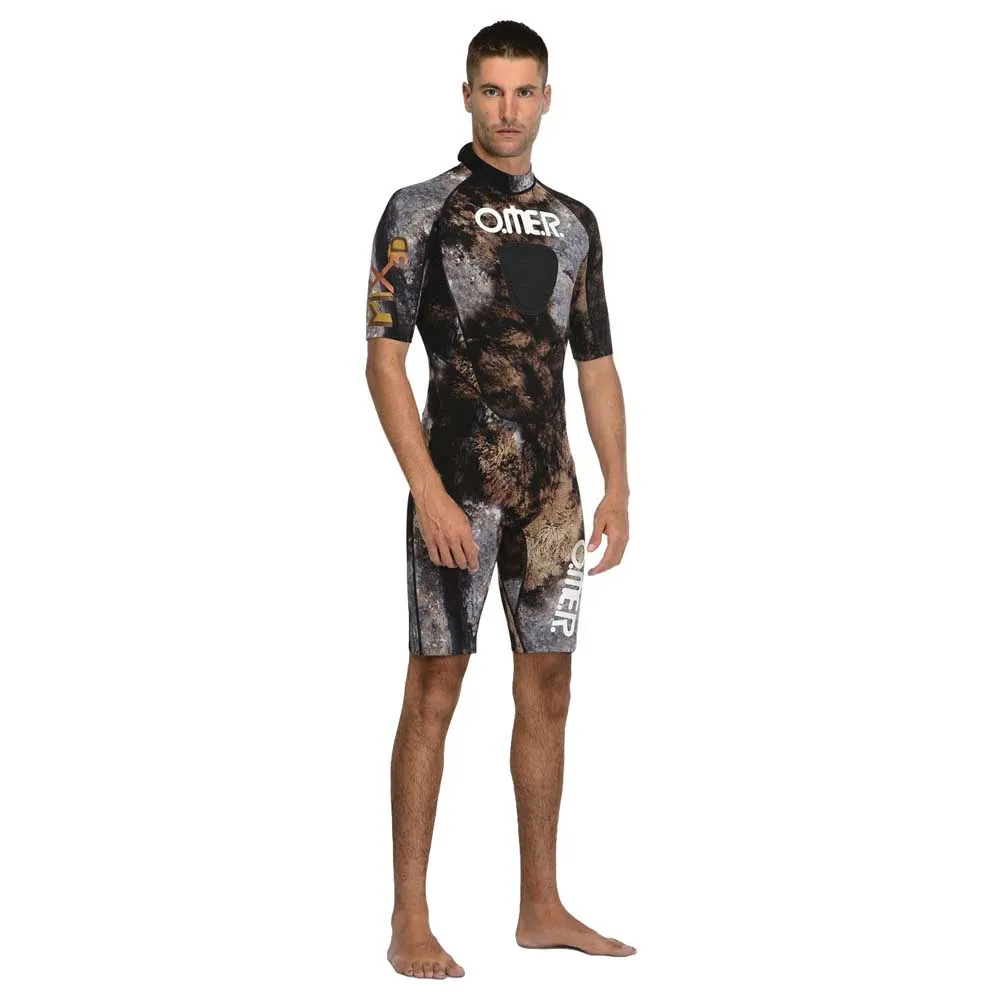 Omer MIX3D Bifo 2 mm wetsuit has been designed for the practice of spearfishing in hot waters due to the thickness is 2 mm. This neoprene suit is the only one that comes with shorts and short sleeves and is one of the thinnest, comfortable, flexible, and soft.