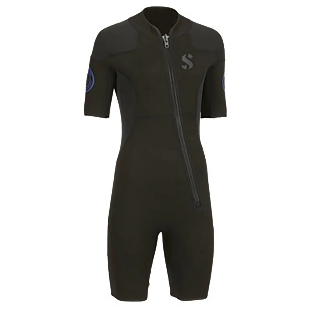 Made of strong yet stretchable X-Foam neoprene with a tough UV-resistant and chlorine-resistant polyester 2-sided lining, this 2.5mm shorty is perfect for tropical diving or pool sessions. It is designed with a triathlon cut that allows for lots of range of motion in the shoulder and arm areas, and is built with the Pure Design Concept method using fewer seams and panels for maximum flexibility. Anti-abrasion material on the shoulders and seat protect against chafing BCD straps and non-skid boat seats, greatly extending the life of the shorty. This is an ideal dive suit for diving classes or resort use.
