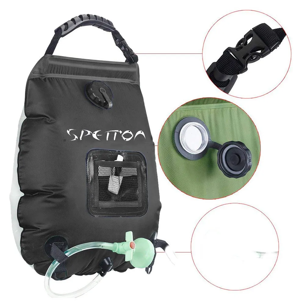 With a capacity of 20 Ltrs, it is made of a very resistant TPU and includes, straps and handle for transport and placement, as well as thermometer and tap with closure.