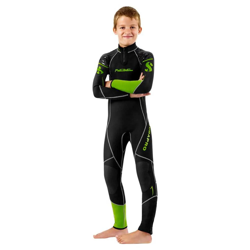 Easy to don and doff, high-stretch side panels increase comfort and range of motion for active young water-lovers. Reinforced kneepads protect lower legs and extend the life of the suit.