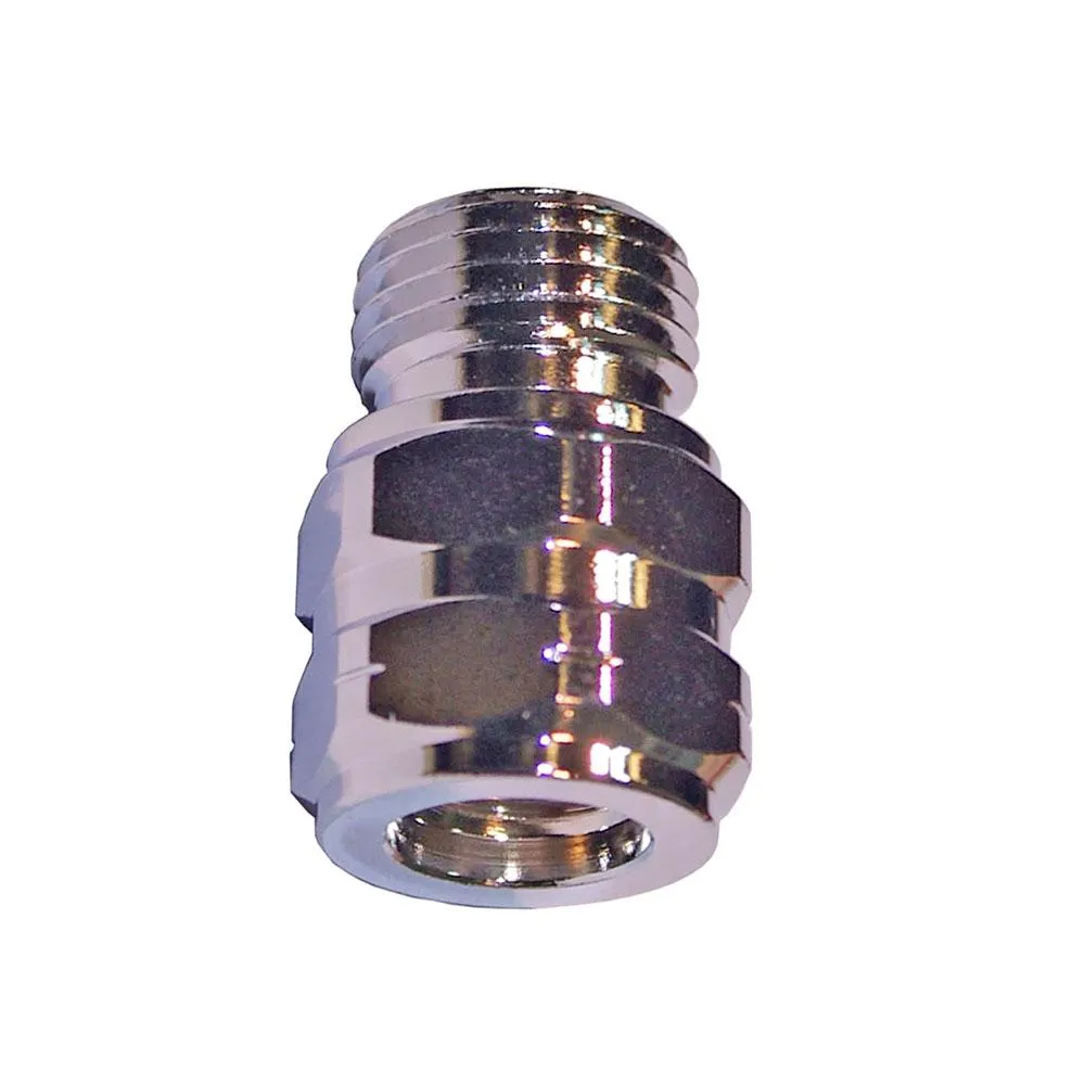 Specific connector for joining two regulator hoses. Female 3/8 UNF and male 9/16 ´UNF.