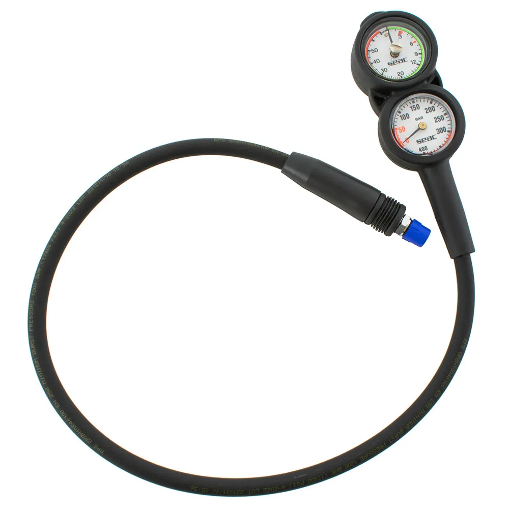 The new CONSOLE 2 analog diving console has an internal spiral system. It has a depth pressure gauge. It is conceived in a modular design with an easy-to-read luminescent indicator face and underwater readability.