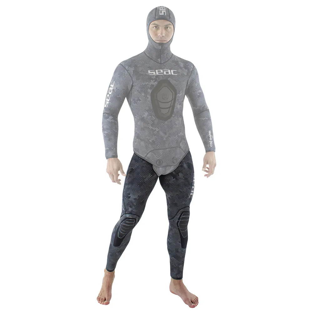 Complies with CE 14225-1 0 SEAC Snake is available in Lady and Man version, with different cuts for jacket and pants and different shapes for the sternal speargun loading support.
