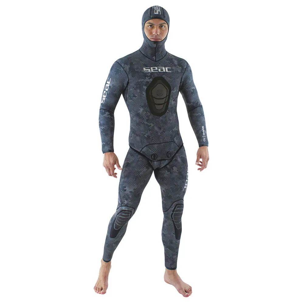 Complies with CE 14225-1 0 SEAC Snake is available in Lady and Man version, with different cuts for jacket and pants and different shapes for the sternal speargun loading support.