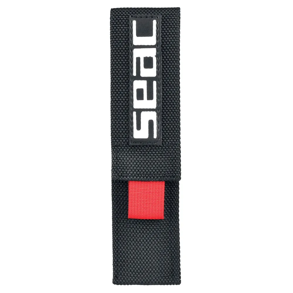 One-piece dive knife with protective black Teflon coating. 95 mm tempered AISI 420 stainless steel dual-cut blade, smooth and serrated, with line cutter. Length 200 mm. Safety grip on both sides of the handle. Ultra-resistant fabric scabbard with Velcro closure. Fastens with two straps, included.