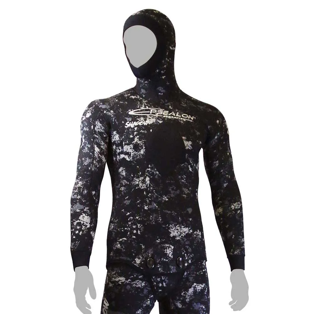 Camo high strength nylon outer / open cell interior.Ergonomic and preformed cut for legs and arms.SCS cuffing on wrists, ankles and hood.PowerTex-type protection on knees.5mm neoprene loading pad with Mesh cover.Beaver tail and bottom jacket braided and lined both sides.