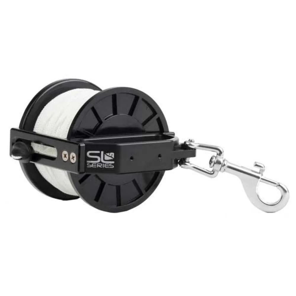 Evolving over the years from one of Dive Rite ?s original products, a basic dive reel, the Slide Lock (SL) line of reels is in no way basic. Its evolutionary roots stem from serious cave exploration where a variety of reels were needed to safely conduct just one dive. Today, many manufacturers make dive reels, but only Dive Rite has the SL Reel, a reel that quickly and easily locks and unlocks the spool with just one hand. No more tightening or loosening a lock-down screw. Using either hand and a simple thumb flick, the SL spool can be locked or unlocked even while wearing thick gloves. The 250 foot spool of braided #24 line provide the right amount of line for many applications, including: cave primary, cave safety, wreck diving, and shooting lift bags. Available in White or Orange line. A spring loaded, self-lubricating locking pin engages with the injection molded, polycarbonate plastic spool, to either lock the spool in place or release it for use. When unlocked, the reel is free spooling meaning that there is no ratcheting action like on other locking reels. The free spool allows for a smooth and effortless deployment of line. The side handle design allows you to quickly switch the reel from hand to hand while deploying line no matter what type of thermal protection you ´re wearing. It also provides the flexibility to use your hands for other tasks while still holding the reel. Securing the reel inside a pocket or to a D-ring on your rig is simple and safe with a marine grade stainless steel shackle snap securely attached to the reel. Gone are the days of a double-ended bolt snap that can easily be lost or roll open. The shackle snap is low profile for efficiency yet won ?t accidentally undo from the reel. Want to use a different type of snap, no problem; you can easily change it out for a different solution. The SL comes with a line stop attached to the loop at the end of the line. This line stop is designed to self-center on the reel and nicely fits into the line guard. With a little separation in the line as it loops through the line stop, grabbing the line loop with gloved fingers is easily done. Features: – Locking/unlocking spool: Thumb activated, spring-loaded locking pin – Spool: Injection molded polycarbonate plastic (resists cracking and warping) – Handle: Aircraft grade aluminum with black hardcoat – Shackle Snap: 316 marine grade stainless steel (corrosion resistant)