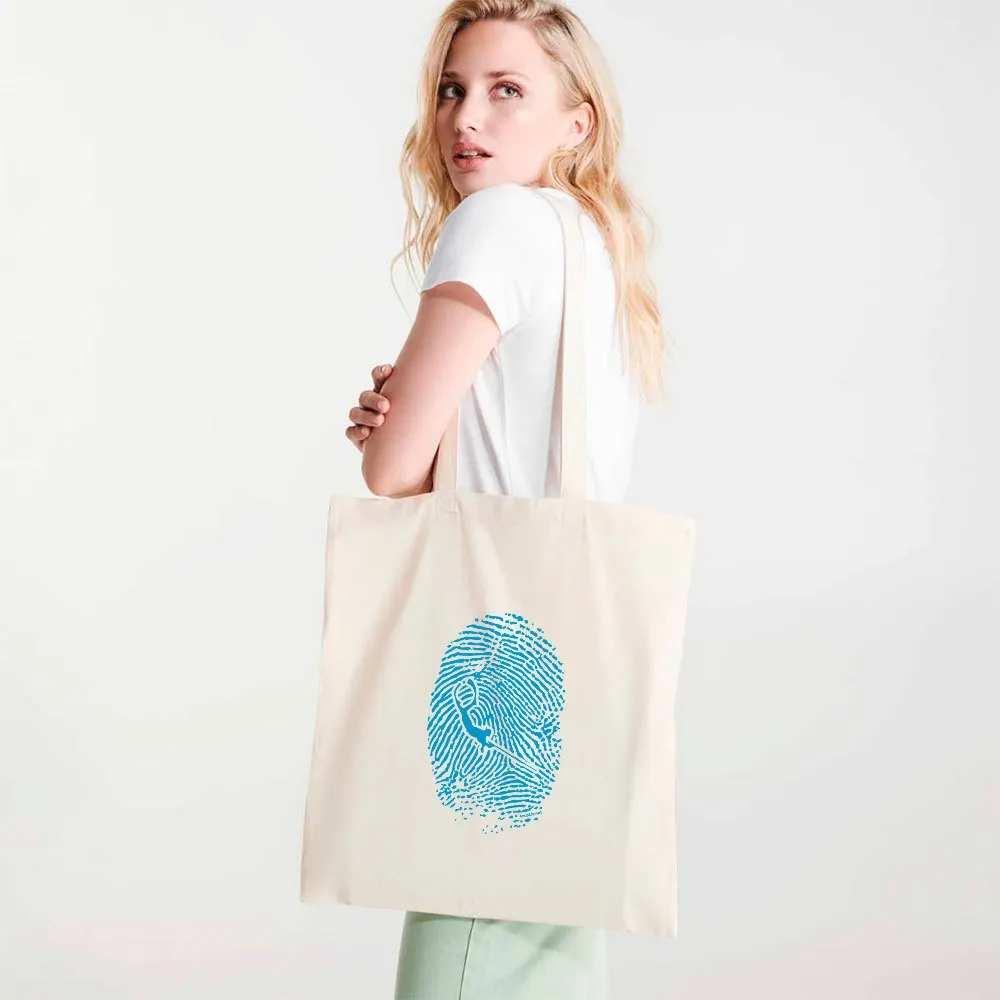 Tote bag made of cotton fabric in natural colour, with long handles in same colour tone.