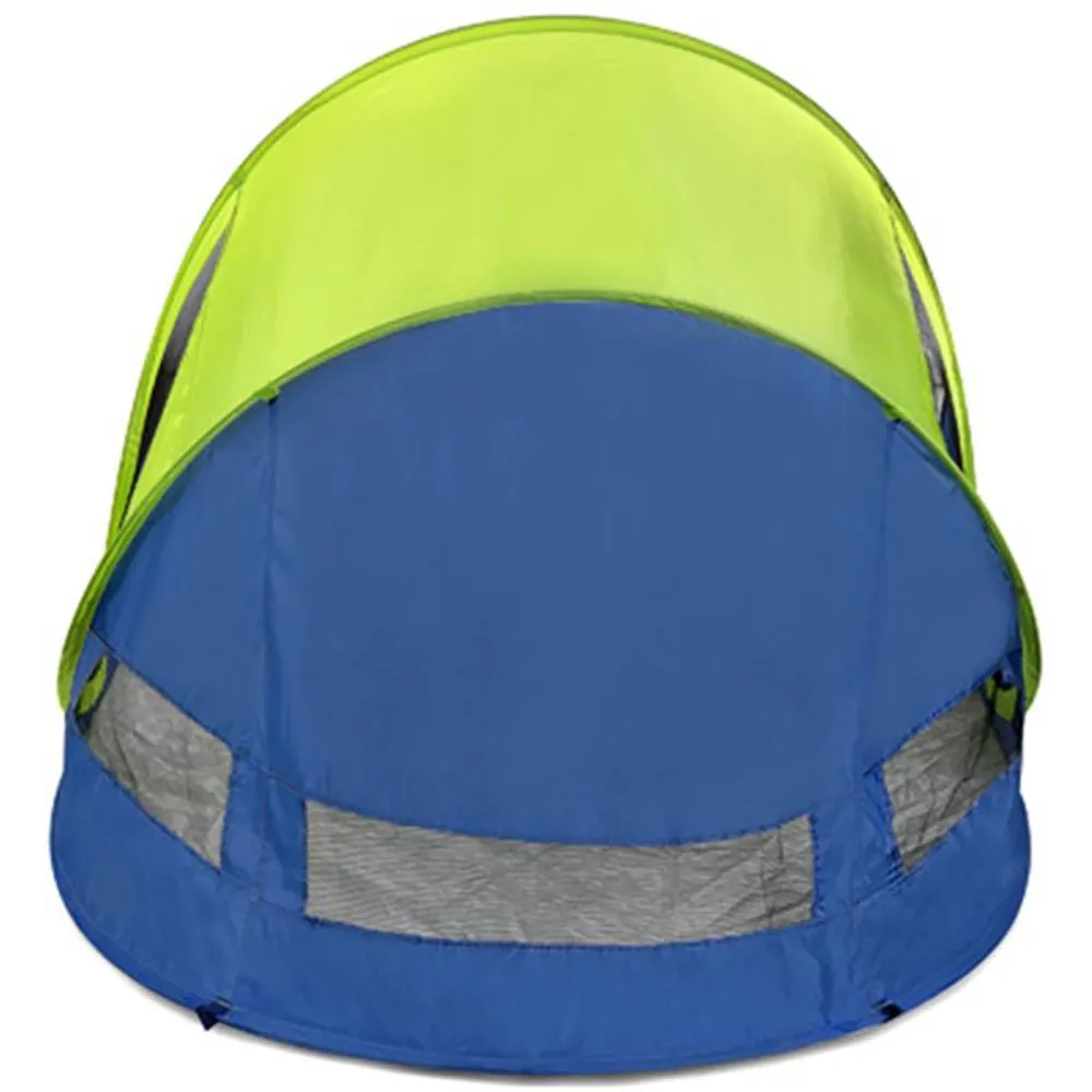 Parametersone-layer beach screendimensions:190 x 120 x 90 cmcarry bag size:ø 63 cmflysheetmaterial:polyester 190Tfloor:PE film, 110 g/m2, waterproofframe:fiberglass, 5 mmweight:0,9 kgthe construction allows for instant assembly and folding the tentmesh inserts enabling ventilation inside the tentguaranteed UV protection up to UV402 inside pocketspacked in a carry bag.