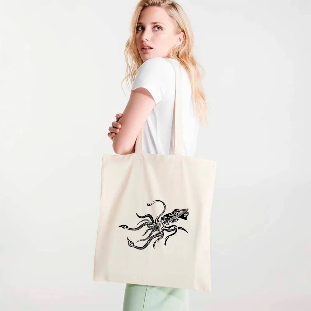 Tote bag made of cotton fabric in natural colour, with long handles in same colour tone.