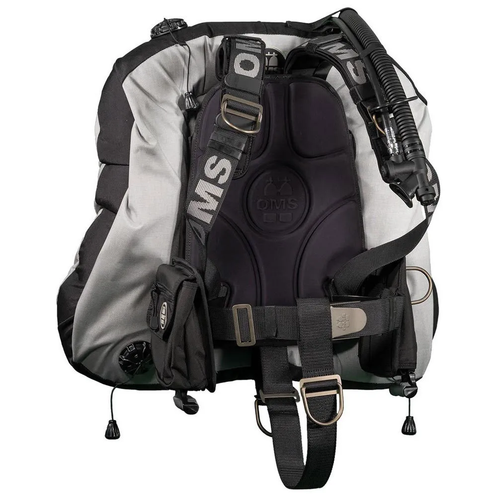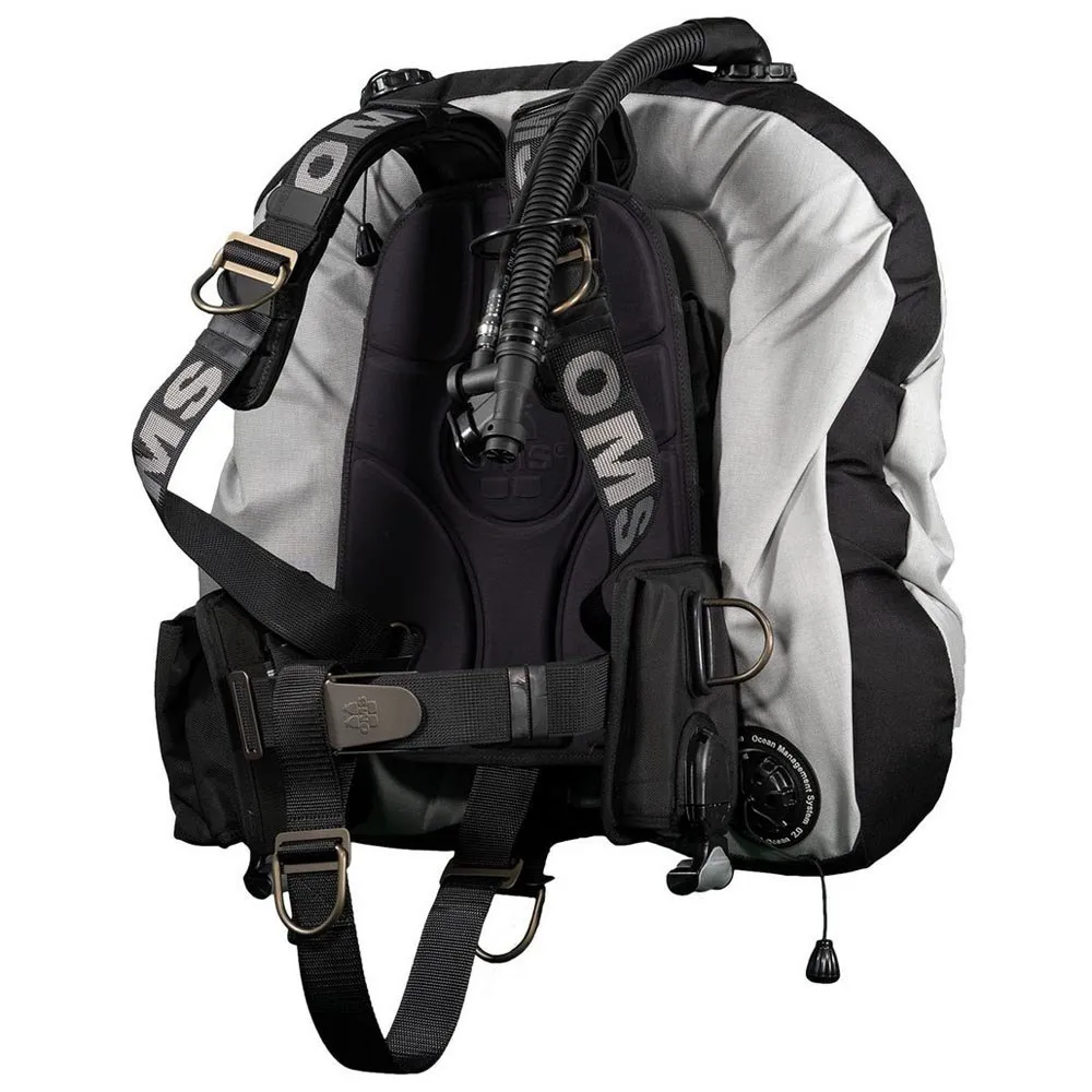 The SmartStream Signature is a DIR style single continuous webbing with our quick adjust system for easily tightening and loosening the shoulder straps. It includes weight pockets-one standard and one with a utility pocket for a mask or smb both with a removable D ring, a molded soft backpad with 4 x 1kg integrated trim pockets on the back, and 2 cam bands. The canister/knife holder and left hip D-Ring are added as uninstalled options allowing to switch from single to double tank configuration. Choose between steel or aluminum back plates and matching hardware (D rings and belt buckle). Includes 2´´ quick adjustable crotch strap with 2 D rings.