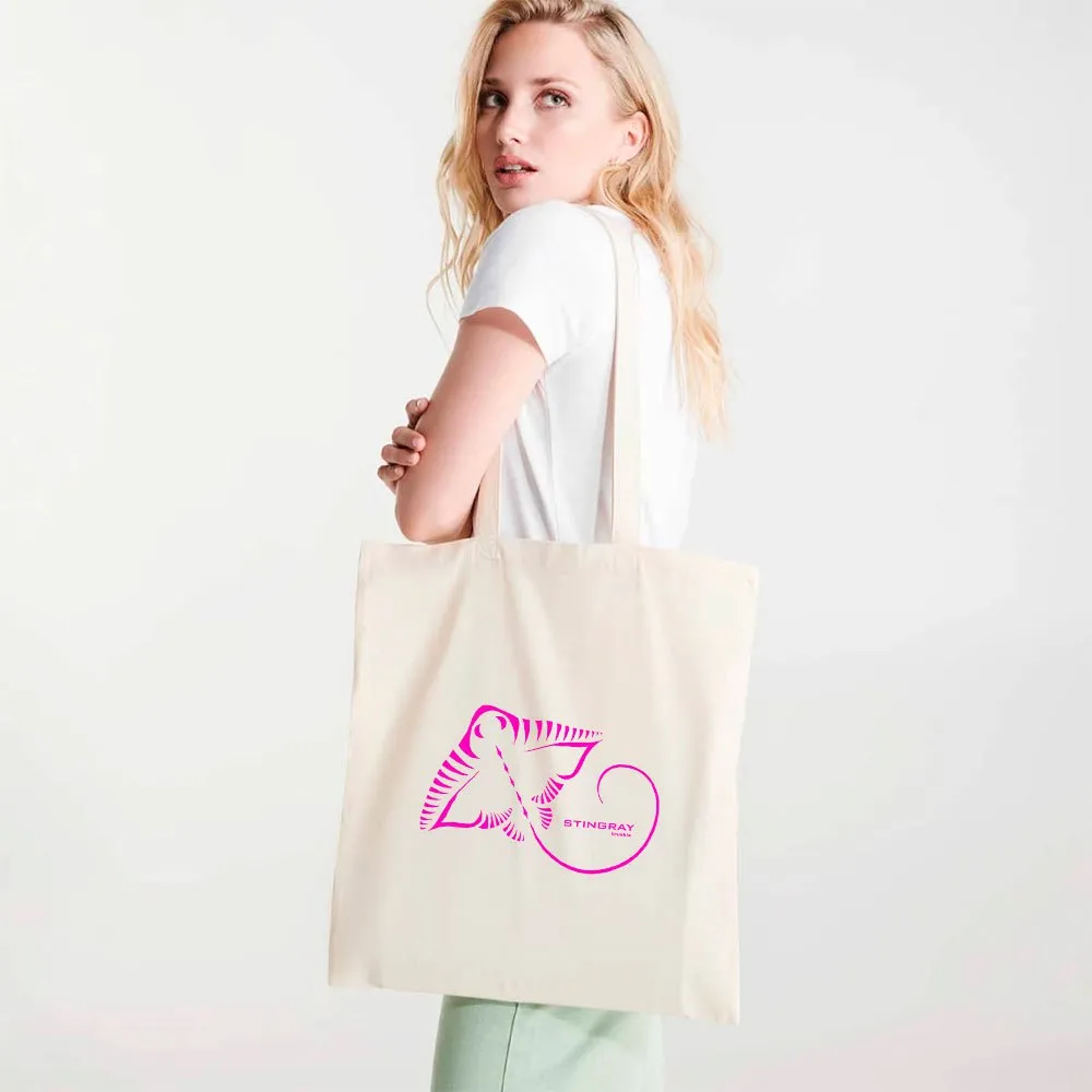 Tote bag made of cotton fabric in natural colour, with long handles in same colour tone.