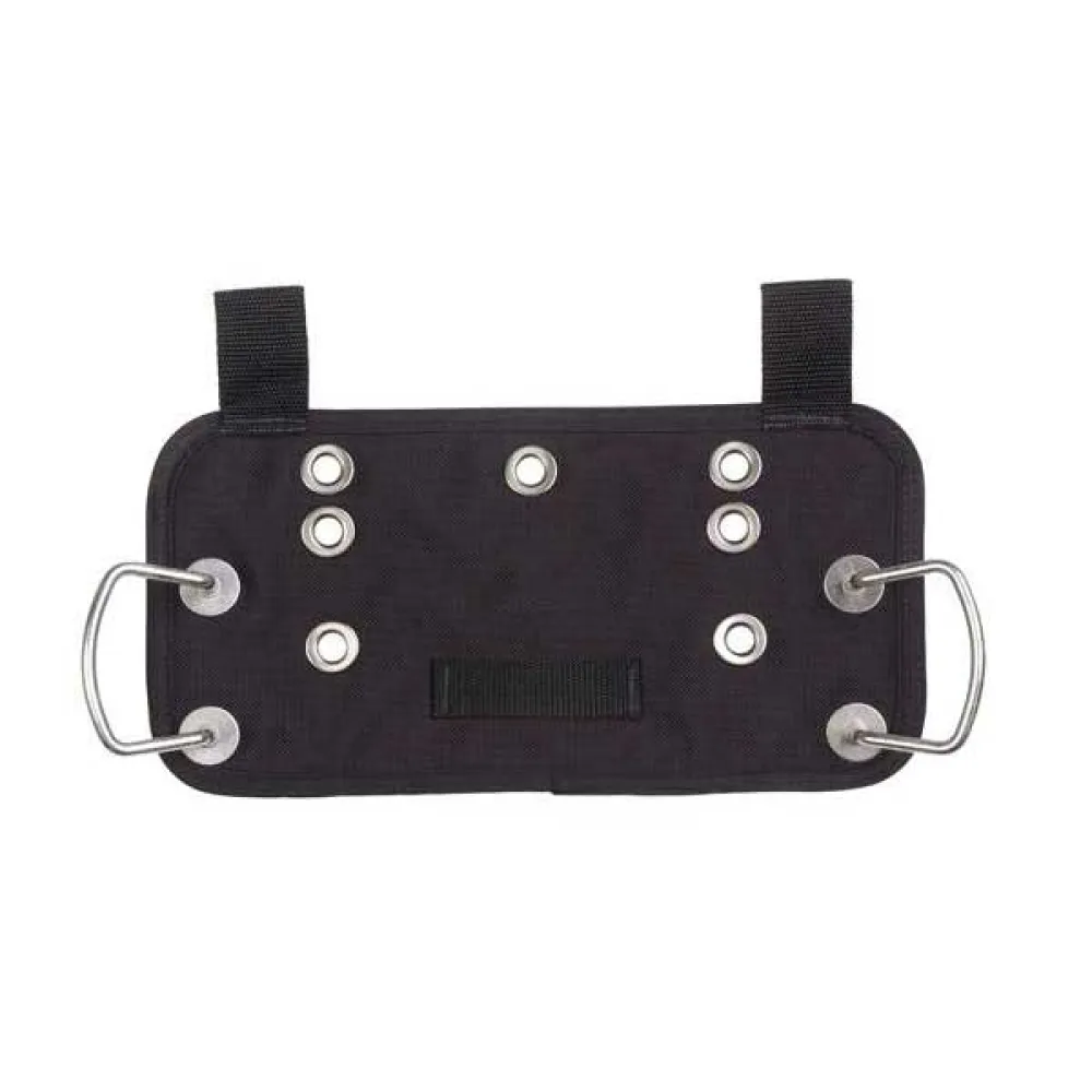 Its rectangular shape places tank attachment points at the edge of the divers body, while outrigger hardware is easy to find due to its orientation facing outwards on the plate.