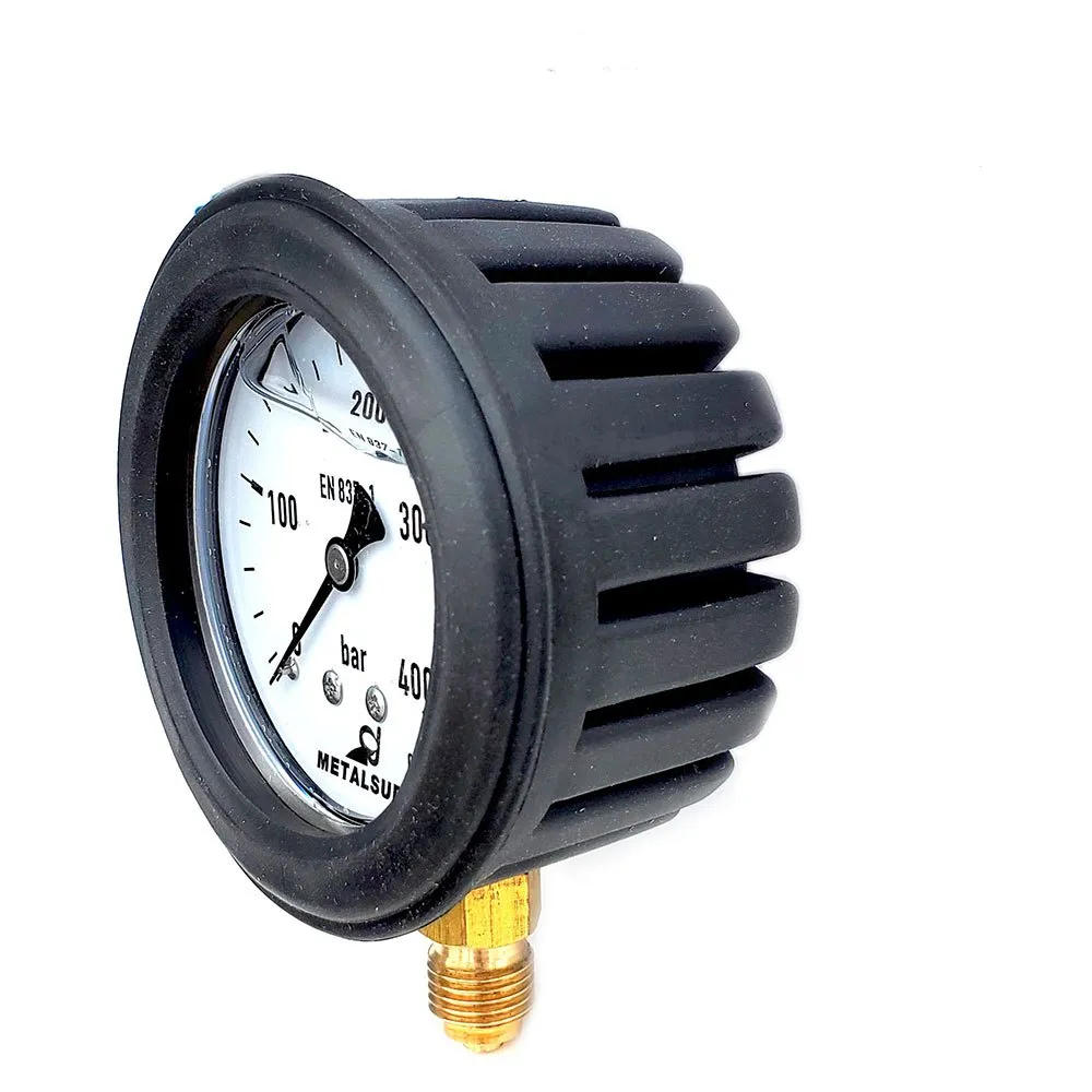 Technical glycerin pressure gauge, supplied with rubber protector.