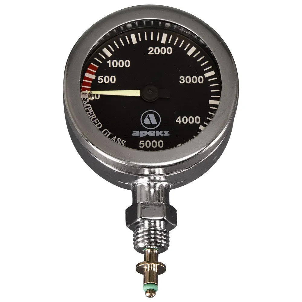 The Apeks TEK gauge is a high quality chrome plated Submersible Pressure Gauge (SPG) with a black face to help reduce glare and to preserve night vision in low light environments.
