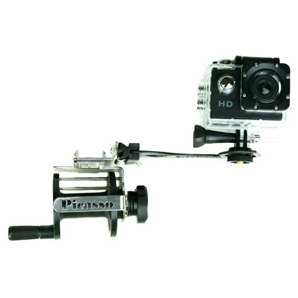 Picasso Top Reel with an adapter to insert a detachable aluminum camera support, so you can quickly attach a video camera to your gun and change it to any other gun using a similar reel in just a few seconds!!