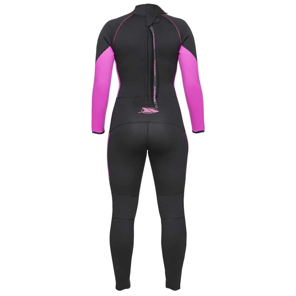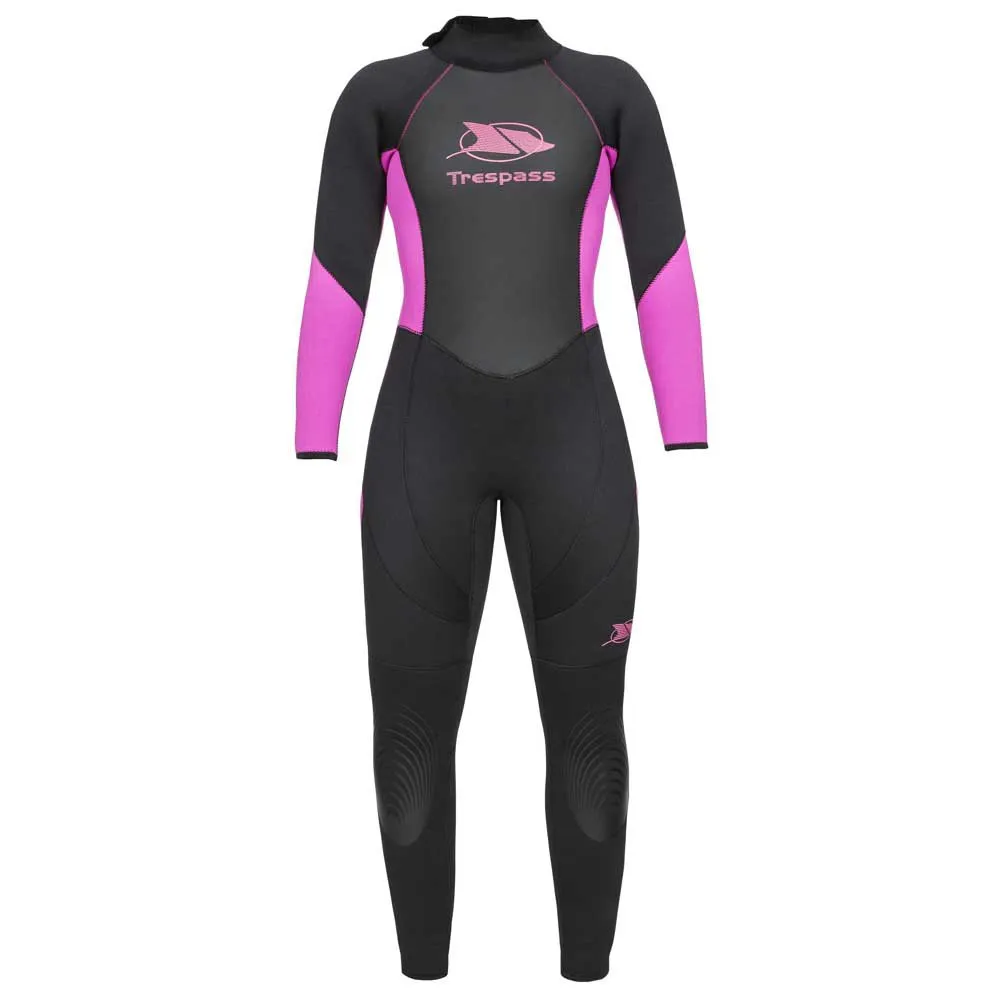 – With a comfortable ergonomic fit, internal key stash and a rear zip closure with handy tab, this ladies´ suit is practical and perfect for serious water activities. Featuring contrast pink panels and Trespass logo to complete the look, as well as knee grips for a good hold when surfing, this wetsuit is perfect for people who like to get out to the seaside on weekends.