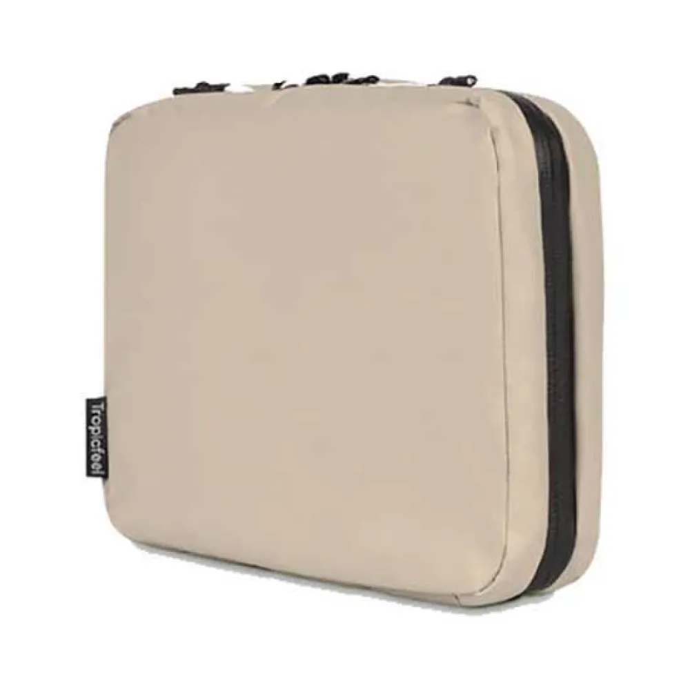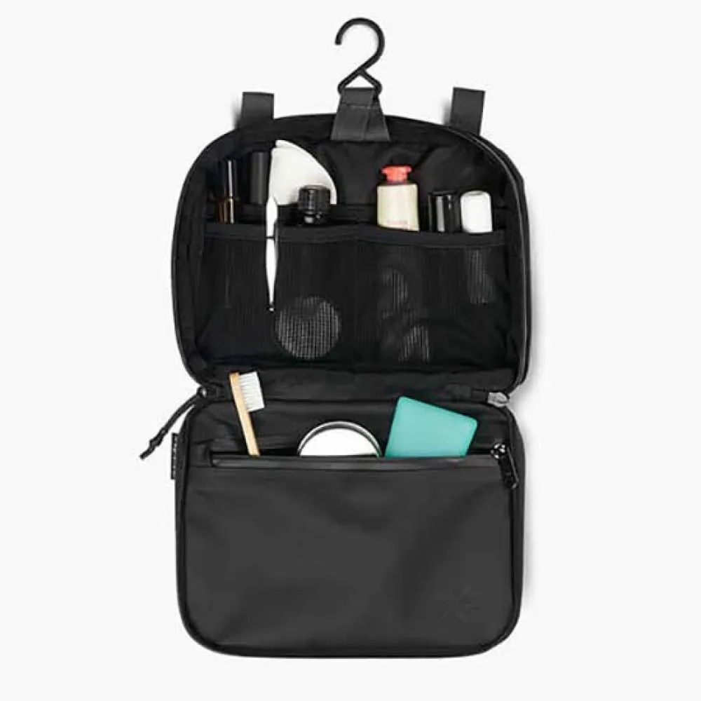 Attach it to the front of the Shell backpack so it doesn’t take up space inside your bag. Designed to be an optimal size for all your toiletries and hygiene essentials. Easy full open access with double zipper and you can hang it up with the attached hook if needed. Includes a mesh zippered top compartment and open mesh compartment. Water and leak proof.