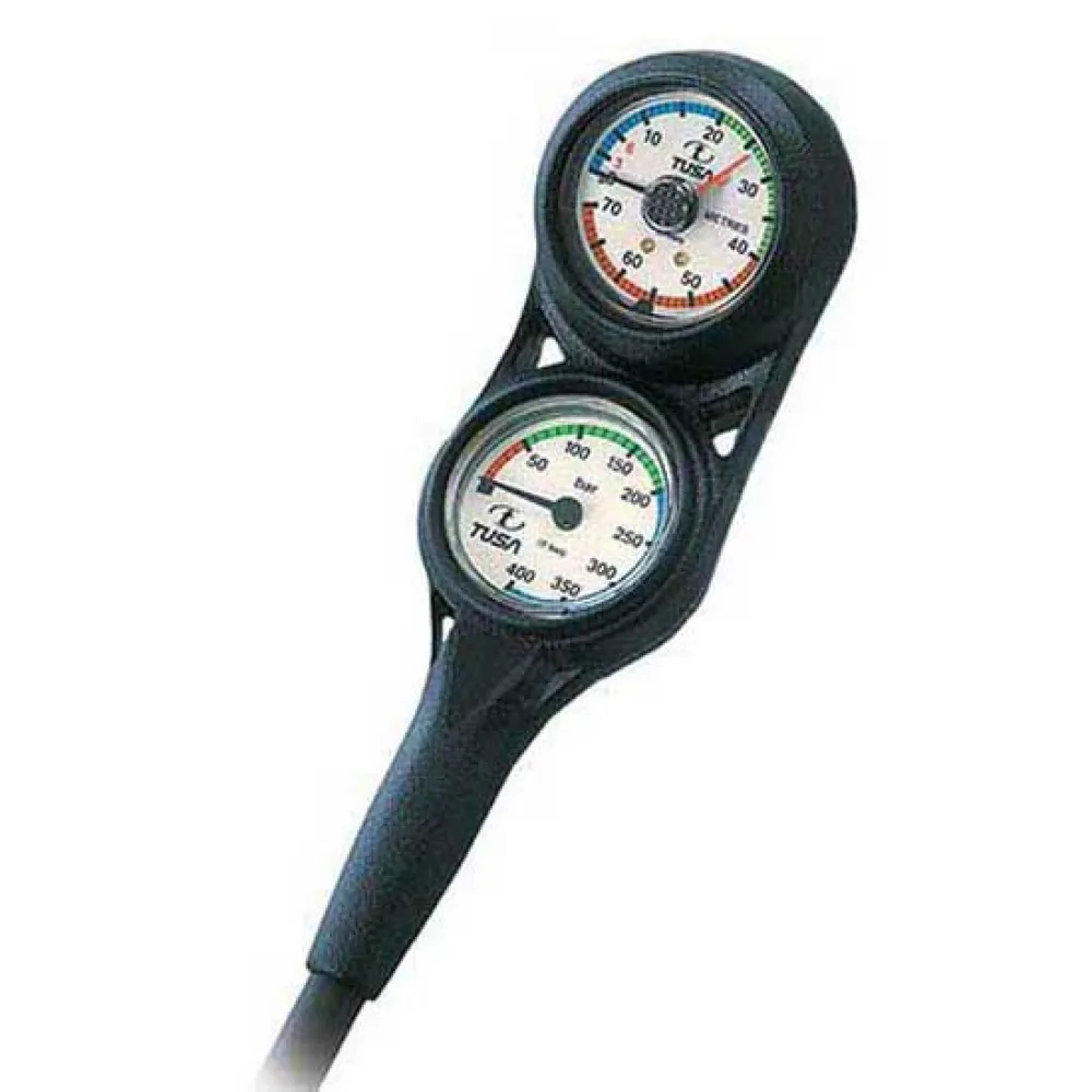 A compact and lightweight 2 gauge console, the SCA-230T provides all the dive information you need, in a mini size. This model features an analog 5000psi/350bar pressure gauge, 200ft/70m depth gauge and is engineered and manufactured to TUSA´s rigid quality and performance standards. The SCA-230T is an ideal supplement for divers using a wrist-type dive computer like the IQ-650, IQ-750 and IQ-900.