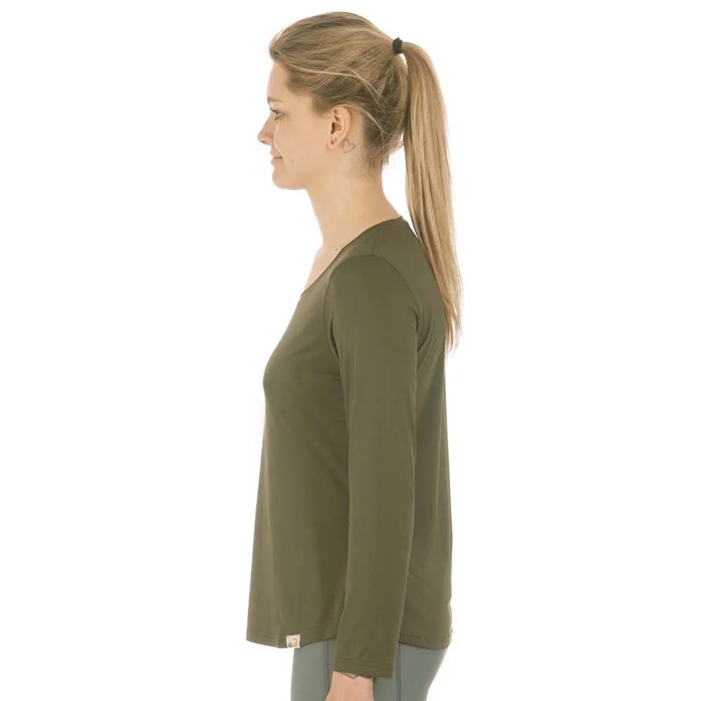 It´s over 30 degrees outside and you long to cool down? We can certainly help you out with the right clothing, because this long-sleeved shirt with round neckline for women is not only ultra-light, but also perfect for high summer thanks to its cooling effect. Made in Europe from 83% polyamide and 17% elastane (Lycra). Washable at 40 degrees and non-iron.