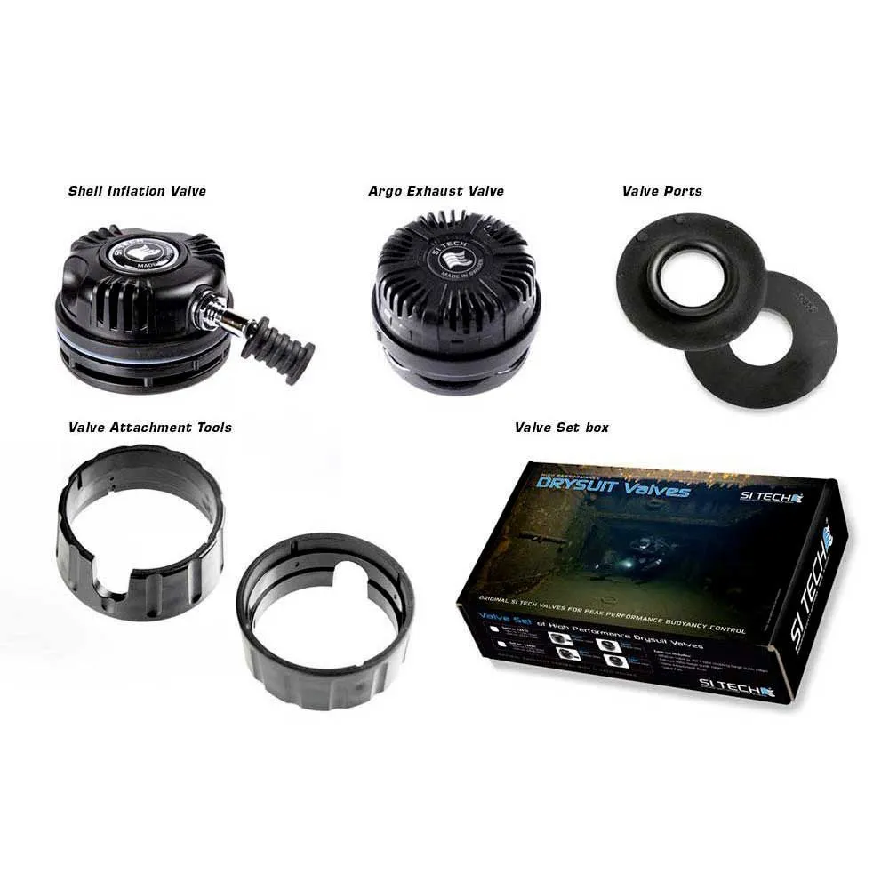 Each set contains one Exhaust Valve (item no. 11335), one Inflation Valve (item no. 25210 or item no. 24780), two Valve Attachment Tools (item no. 18222) and two Valve ports (item no. 60852-CUT)