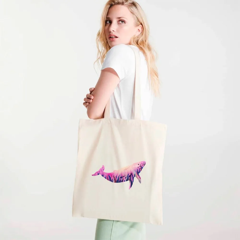 Tote bag made of cotton fabric in natural colour, with long handles in same colour tone.