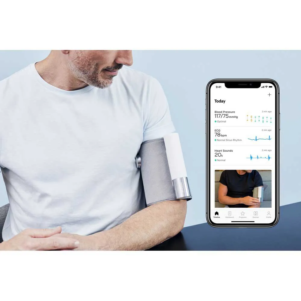 BPM Core is our most advanced health device to date, combining medical data traditionally only available in a clinical setting with a seamless design. Along with blood pressure and heart rate monitoring, the three-in-one device records ECG, which is used to identify atrial brillation (AFib), a serious form of irregular heart rhythm that can lead to heart failure, fatigue and shortness of breath and is a major risk for stroke. In addition, it provides an integrated digital stethoscope that can provide early detection of valvular heart disease, characterized by damage to one of the four heart valves that may require surgical intervention to avoid heart failure. Using the form factor of a blood pressure monitor, users can check their results in just 90 seconds along with color-coded feedback directly on the device, and they can view their complete history in the free Health Mate app via Wi-Fi or Bluetooth® connection. Data can then be easily shared with doctors. The product features a long battery life of up to 6 months and is rechargeable via micro USB cable.