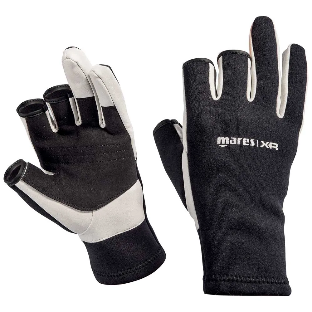 3 first phalanx cutted fingers (thumb, index, middle) Double-lined neoprene, with Amara 2mm inserts No velcro strap Best design to maintain the fel and touch on finger ends for blind diving.